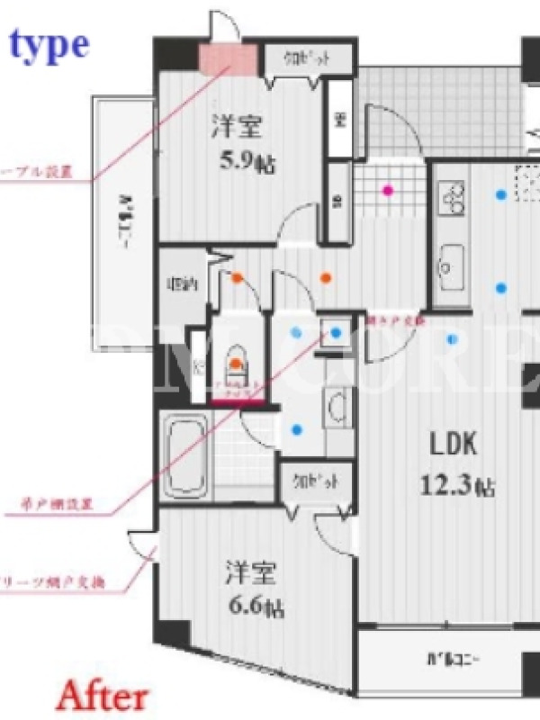 | 間取内容 | 2LDK 〜 2LDK | 面積 | 62.60m²~62.60m² |