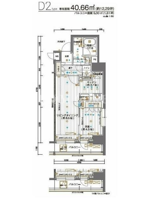 | 間取内容 | 1R 〜 1LDK | 面積 | 30.81m²~40.66m² |