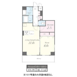 | 間取内容 | 1SLDK 〜 1SLDK | 面積 | 46.11m²~46.11m² |
