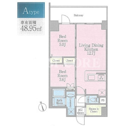 | 間取内容 | 1SLDK 〜 2LDK | 面積 | 48.95m²~50.42m² |
