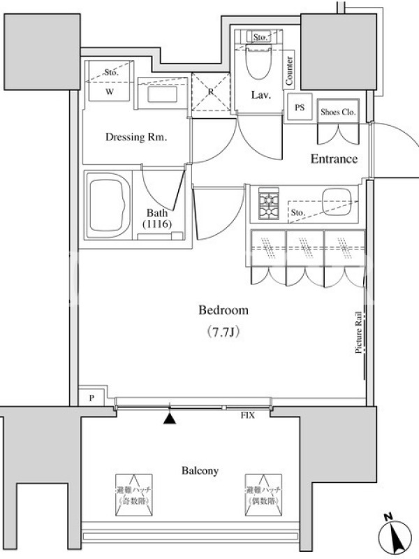| 間取内容 | 1K 〜 1DK | 面積 | 25.85m²~27.54m² |