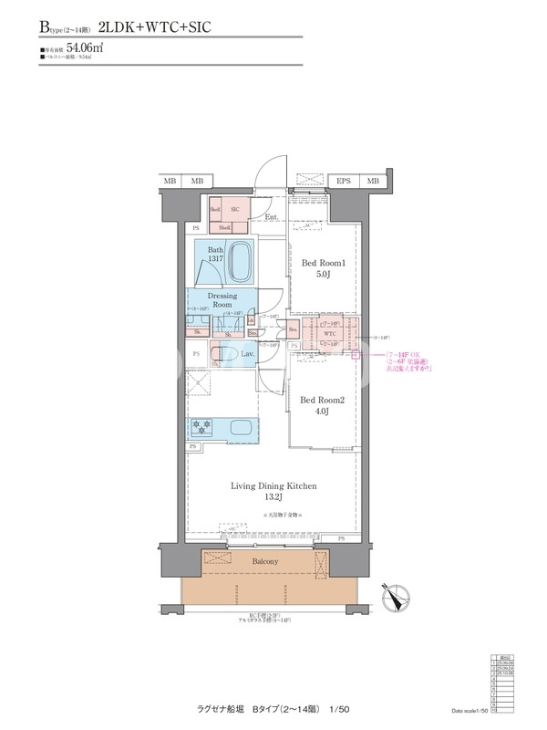 間取内容 2LDK 〜 3LDK 面積 54.06m²~62.22m²