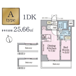 | 間取内容 | 1K 〜 1DK | 面積 | 25.64m²~29.95m² |