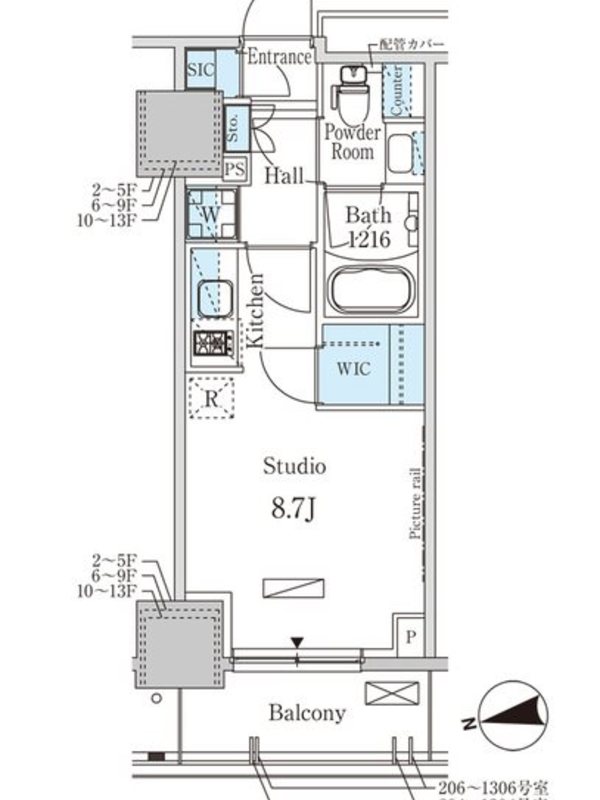 | 建物階数 | 地上13階 | 部屋階数 | 11階 |
