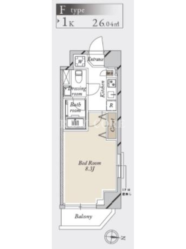 敷金0.0ヶ月、 東向き、 広さ26.04平米のお部屋です。