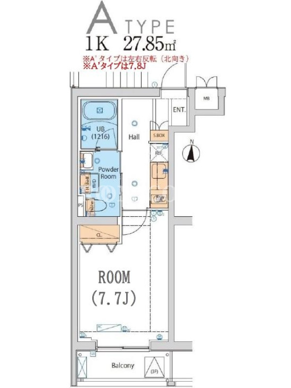 敷金0.0ヶ月、 南向き、 広さ27.85平米のお部屋です。