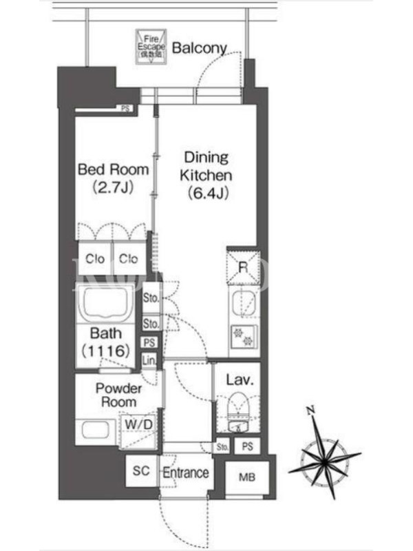 敷金0.0ヶ月、 北向き、 広さ27.41平米のお部屋です。