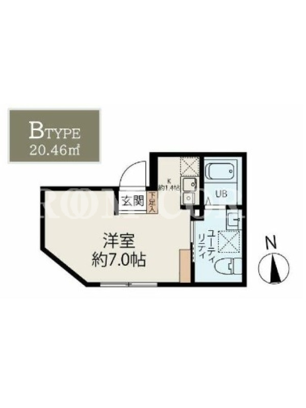 敷金0.0ヶ月、 南向き、 広さ20.46平米のお部屋です。