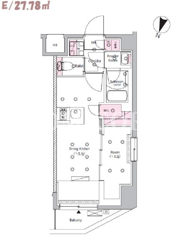 敷金0.0ヶ月、 北向き、 広さ27.78平米のお部屋です。