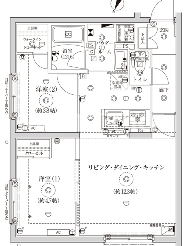 敷金0.0ヶ月、 北向き、 広さ47.4平米のお部屋です。