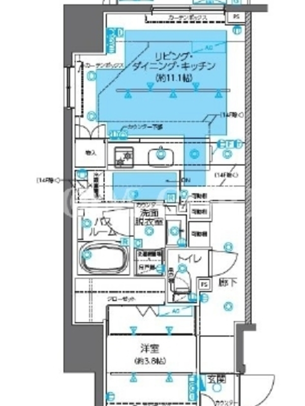 | 建物階数 | 地上14階 | 部屋階数 | 11階 |