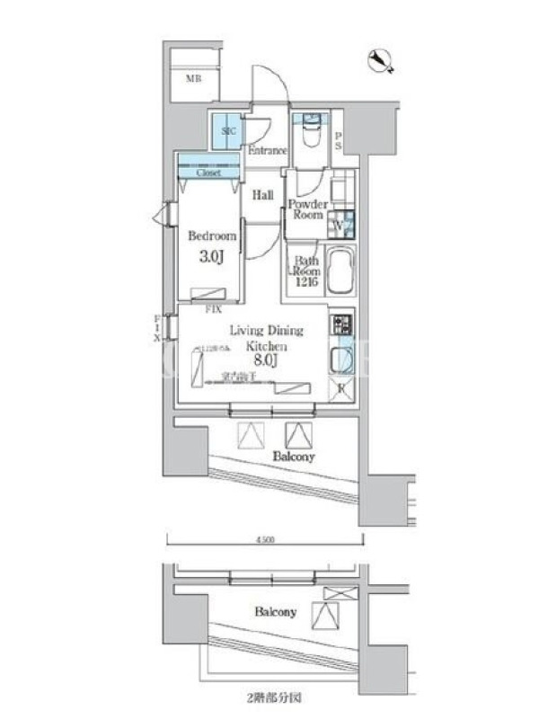 | 向き | 北東 | 建物構造 | RC |
