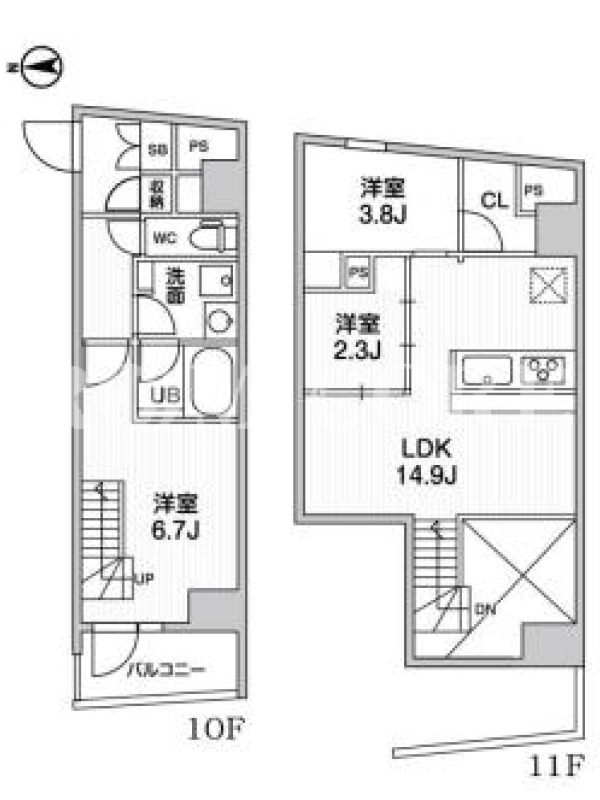 | 建物階数 | 地上11階 | 部屋階数 | 10階 |