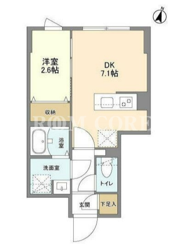 敷金1.0ヶ月、 北向き、 広さ25.7平米のお部屋です。