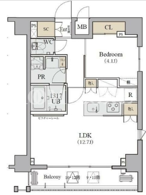| 建物階数 | 地上12階 | 部屋階数 | 12階 |