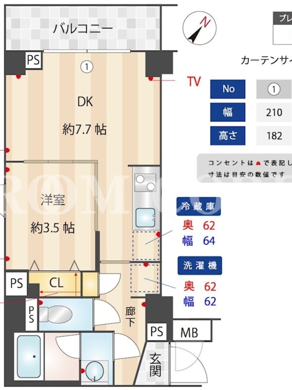 | 向き | 北西 | 建物構造 | RC |