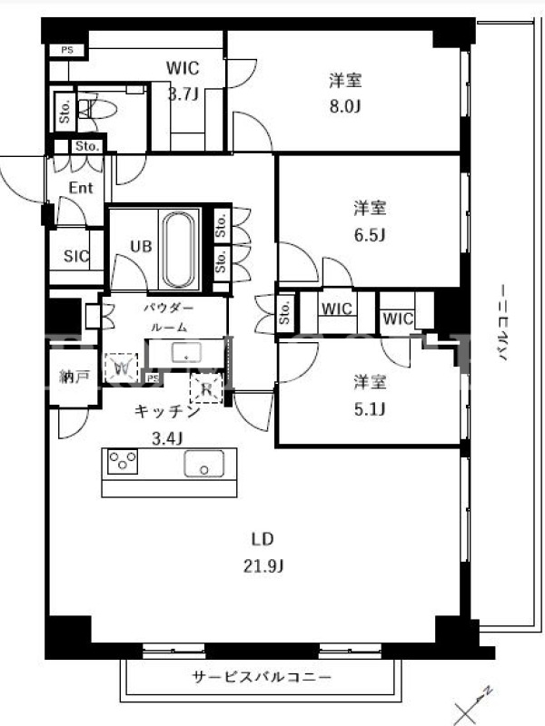 | 向き | 北東 | 建物構造 | RC |