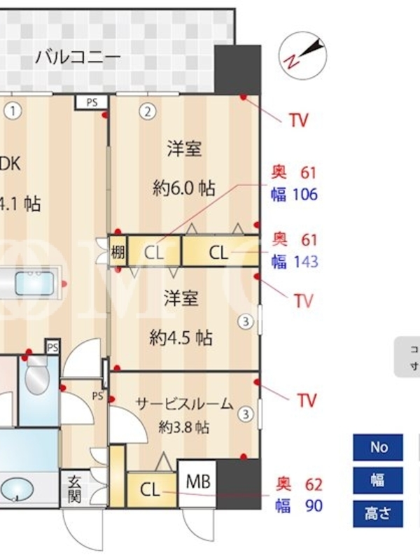 敷金1.0ヶ月、 南東向き、 広さ64.49平米のお部屋です。