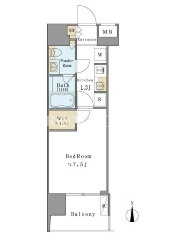 敷金1.0ヶ月、 南向き、 広さ26.16平米のお部屋です。