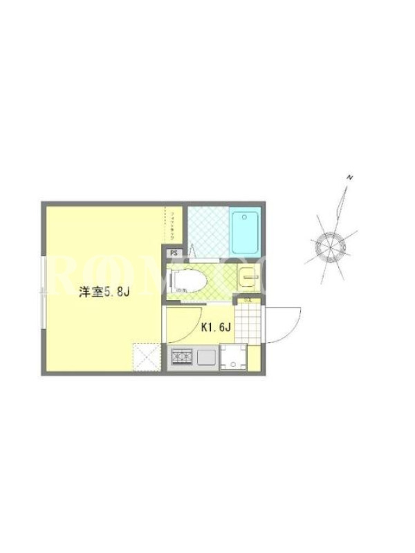 敷金0.0ヶ月、 西向き、 広さ16.73平米のお部屋です。