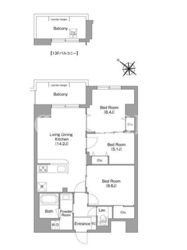 | 建物階数 | 地上13階 | 部屋階数 | 12階 |