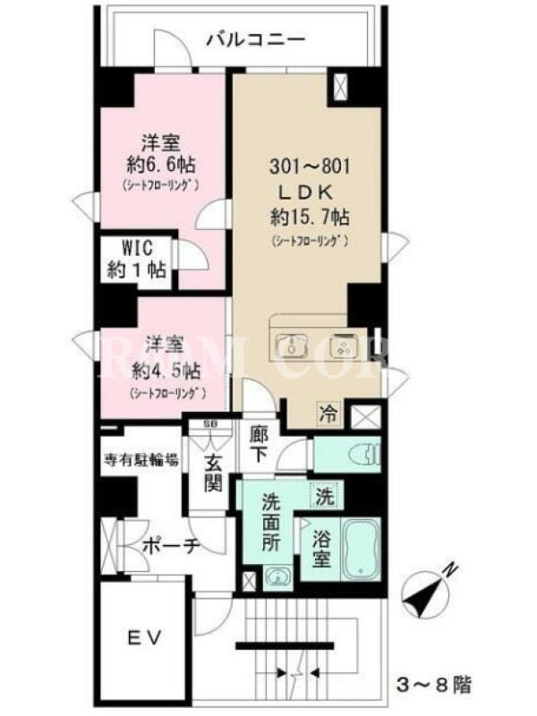 | 向き | 北西 | 建物構造 | RC |
