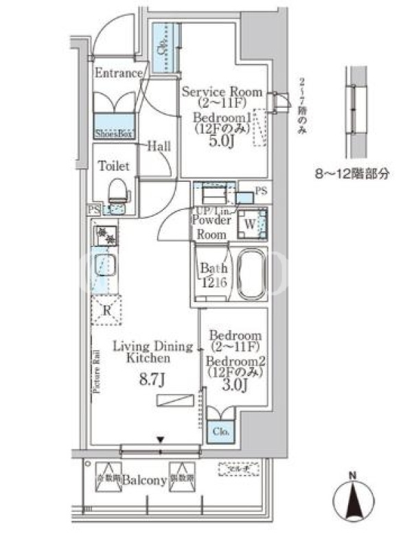 | 建物階数 | 地上12階 | 部屋階数 | 7階 |