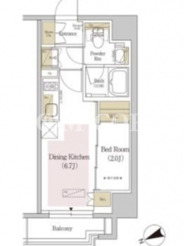 敷金1.0ヶ月、 北西向き、 広さ25.55平米のお部屋です。