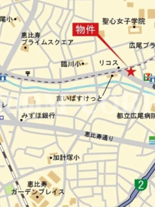 東京メトロ日比谷線「広尾」駅 徒歩6分 JR山手線「恵比寿」駅 徒歩12分 東京メトロ南北線「白金台」駅 徒歩19分 都営三田線「白金高輪」駅 徒歩19分 東急東横線「代官山」駅 徒歩20分 |
