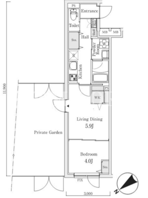 | 向き | 北西 | 建物構造 | RC |